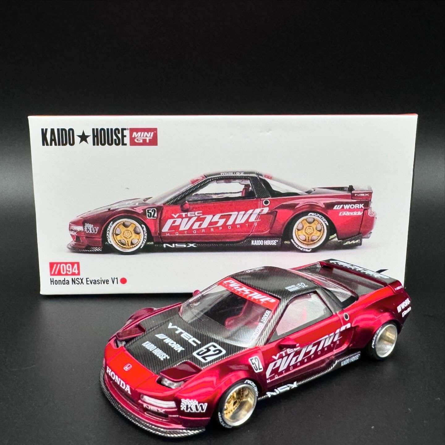 The Kaido House KHMG094 Honda NSX Evasive V1 is a detailed 1:64 scale model that combines JDM performance with Kaido House’s custom flair. Featuring wide-body styling, aggressive aero parts, and the iconic Evasive Motorsports livery, this release perfectly captures the spirit of Japanese tuning culture and is a must-have for collectors.