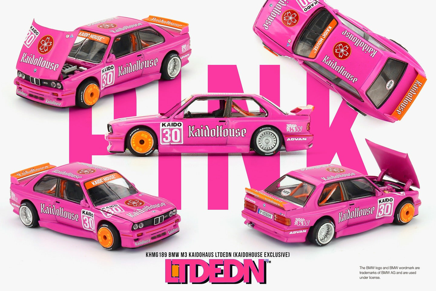 We’ve created a special colorway of our KAIDOHAUS M3 and it’s one of the brighter cars we’ve made! This Kaido Works M3 LTDEDN drips in a newly formulated pearl pink with orange accents. You know pink is one of our favorite colors here at Kaido House, and we couldn’t wait to see it on this casting.